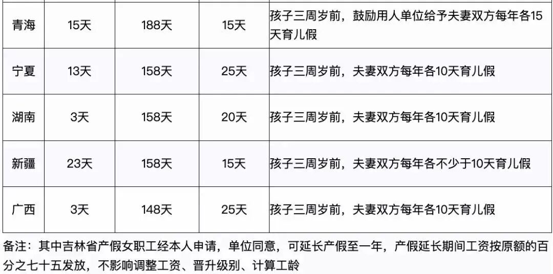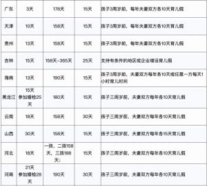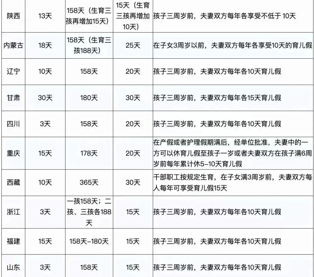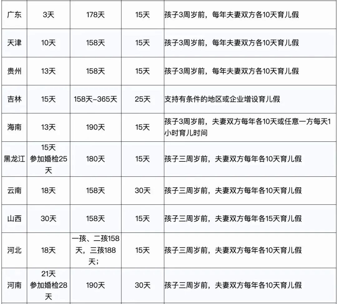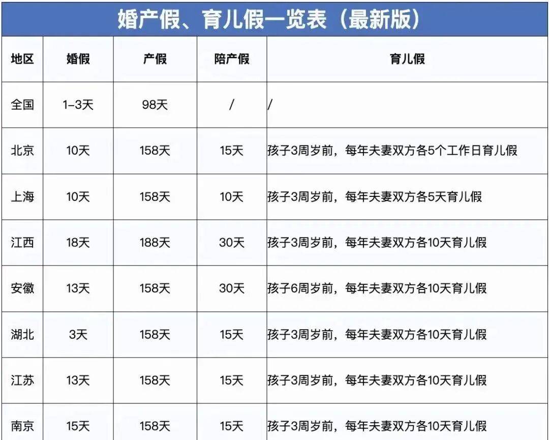 最新全国多地产假、育儿假一览表(仅供参考,具体以当地规定为准)
